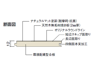 木質材料を使用しておりますので、床暖房使用により、多少の収縮があり、条件によっては約1mmの隙間やソリが発生することがありますので予めご了承ください。