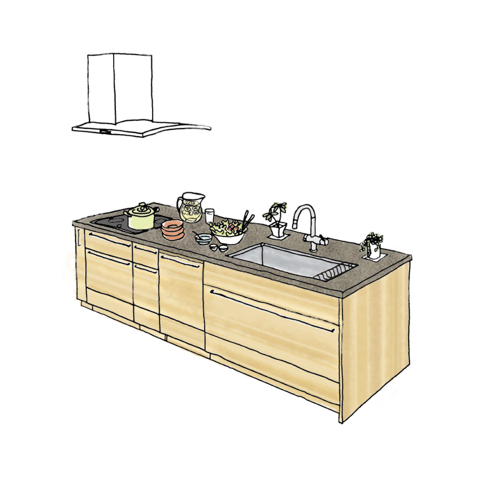 WOODONE (ウッドワン) システムキッチン su:iji(スイージー) LEMONADEテイスト P型 Standard class LEP-02-A 間口2575mm - お問い合わせください!