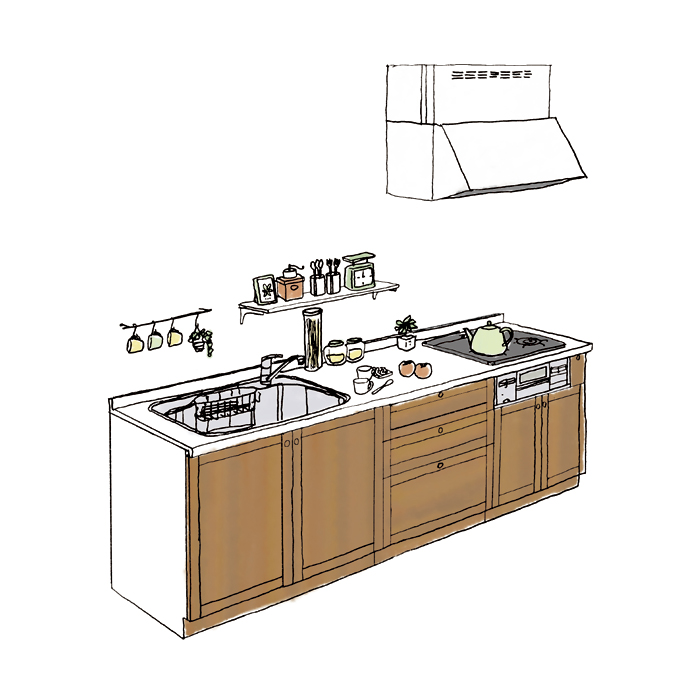 WOODONE (ウッドワン) システムキッチン su:iji(スイージー) CAFE LATTEテイスト I型 Standard class CFI-02-A 間口2550mm - お問い合わせください!