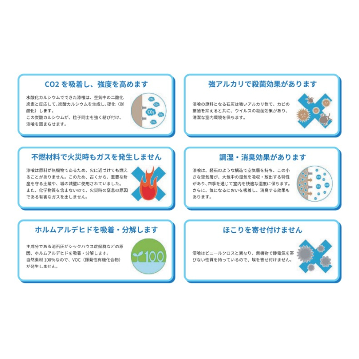 しっくいは、空気中の炭酸ガスを取り込んで硬化するという特徴があります。