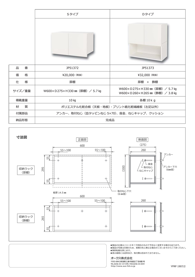 材質:ポリエステル化粧合板(天板・地板)・プリント化粧合板(左記以外)