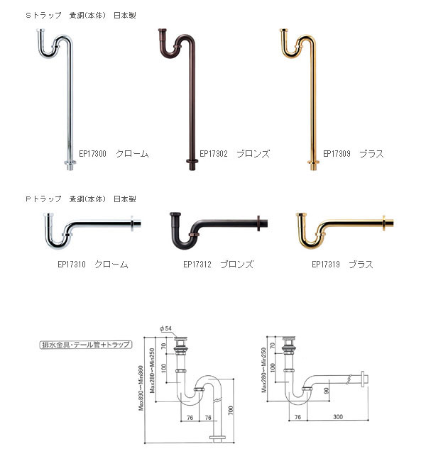 排水金具・テール管+Sトラップ/Pトラップ