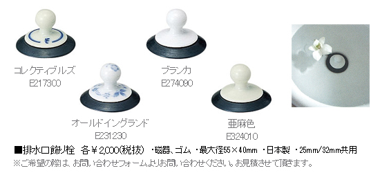 排水口栓はお問い合わせください。