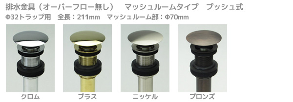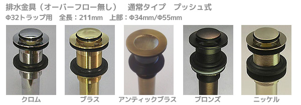 排水金具(オーバーフロー無し) 各色