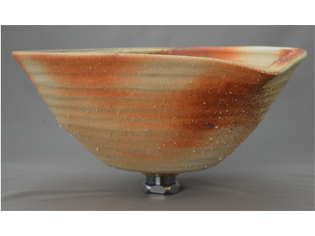 重蔵窯 洗面ボウル 利休信楽焼手洗い鉢 炎杉灰 001-31