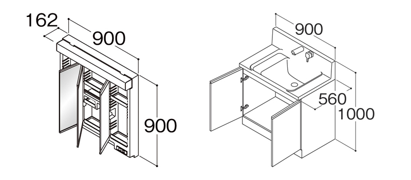 W900三面鏡(ベーシックLED) KVM-CL900-3B-KG