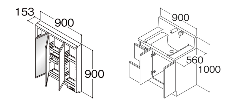 Housetec(ハウステック) 洗面化粧台 COCOSH(ココッシュ) 間口900 片引き出しタイプ 三面鏡(スリムLED照明付き) 扉Aカラー 一般地仕様の説明
