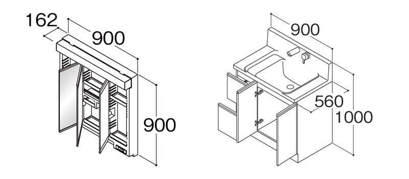 W900三面鏡(ベーシックLED) KVM-CL900-3B-KG