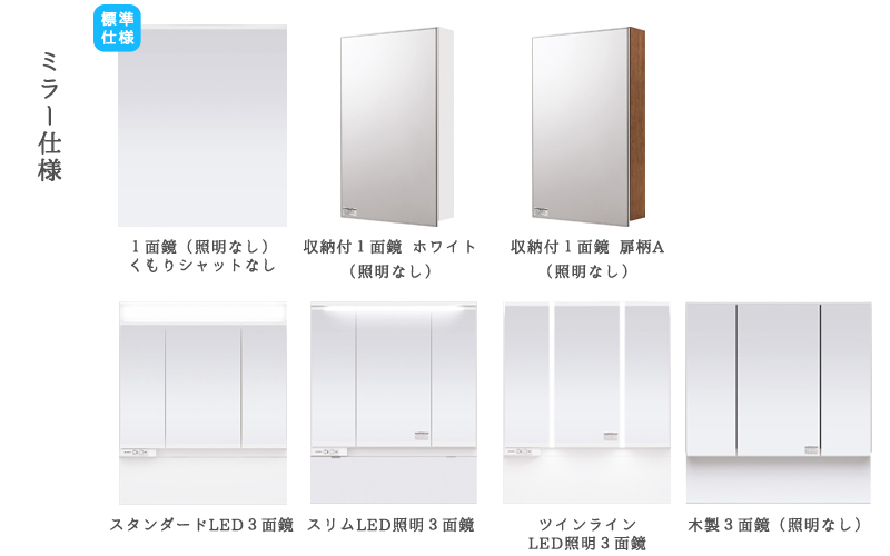 洗面化粧台 ウツクシーズ ベースプラン 片引出しタイプ LED照明3面鏡  幅1000mm 扉カラー:ホワイト 一般地仕様