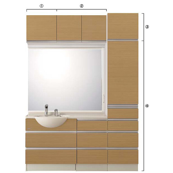 洗面化粧台 EPOCH(エポック) 片引出し 3面鏡 間口1200mm 扉カラー:Qシリーズ 一般地仕様