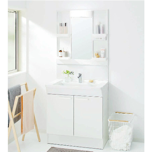 洗面化粧台 サクア 間口750mm 2枚扉タイプ 三面鏡(エコミラー有り) 扉カラー:パナシェホワイト 一般地用