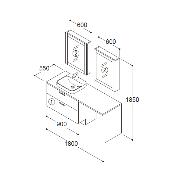 TOTO 洗面化粧台 ドレーナ 間口1800mm 二段引き出し 木枠一面鏡600mm収納付 陶器製ベッセル式ボウル 扉:ラフビダーウッド カウンター:ラフビダーウッド